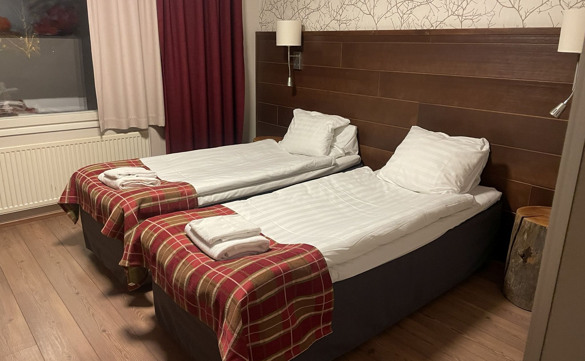 We verblijven aan de rand van Levi in het prachtige hotel van Sirkantähti van de keten Lapland Hotels. Met veel prachtige hotels in Fins Lapland is de keten beroemd in de omgeving. Lapland Hotels Sirkantähti heeft 70 hotelkamers en verschillende appartementen in een aantal gebouwen. Voordeel is dat je in elke kamer kunt genieten van je eigen Sauna! De kamers zijn netjes ingericht met fijne bedden. Het zijn fijne ruime kamers met een ruime badkamer waar naast een inloopdouche ook de sauna te vinden is. Op de kamer is een droger om natte skikleding snel te drogen. Super handig! Check in is om 16:00 en uitchecken moet je voor 11:00.